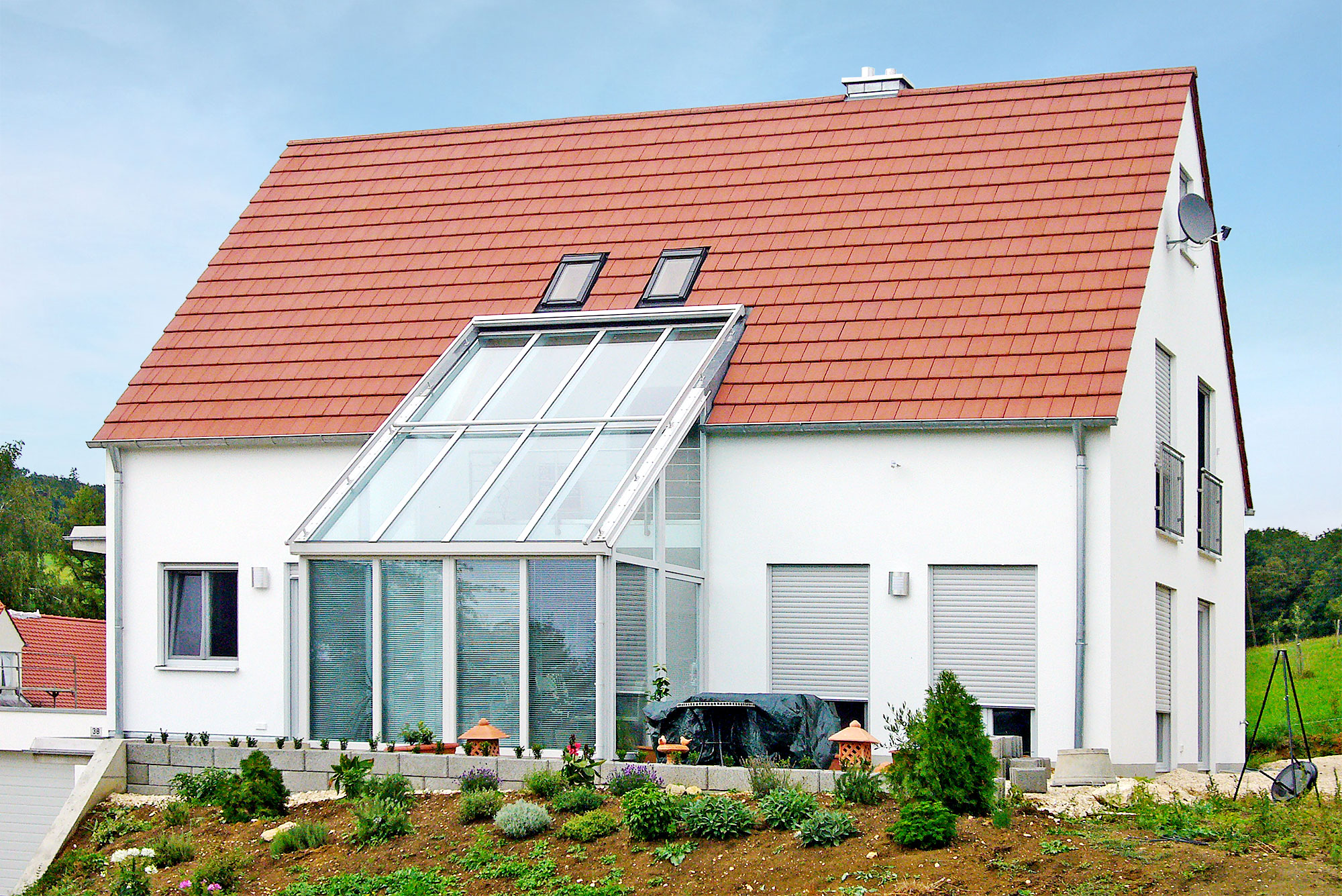 Automatische Steuerungselemente für Beschattung, Belüftung und Klimatechnik sowie praktische Ausstattungselemente wie beispielsweise der Laubstopp oder die Rinnenheizung für die Dachrinne Ihres Wintergartens reduzieren die Pflegearbeit auf ein Minimum.