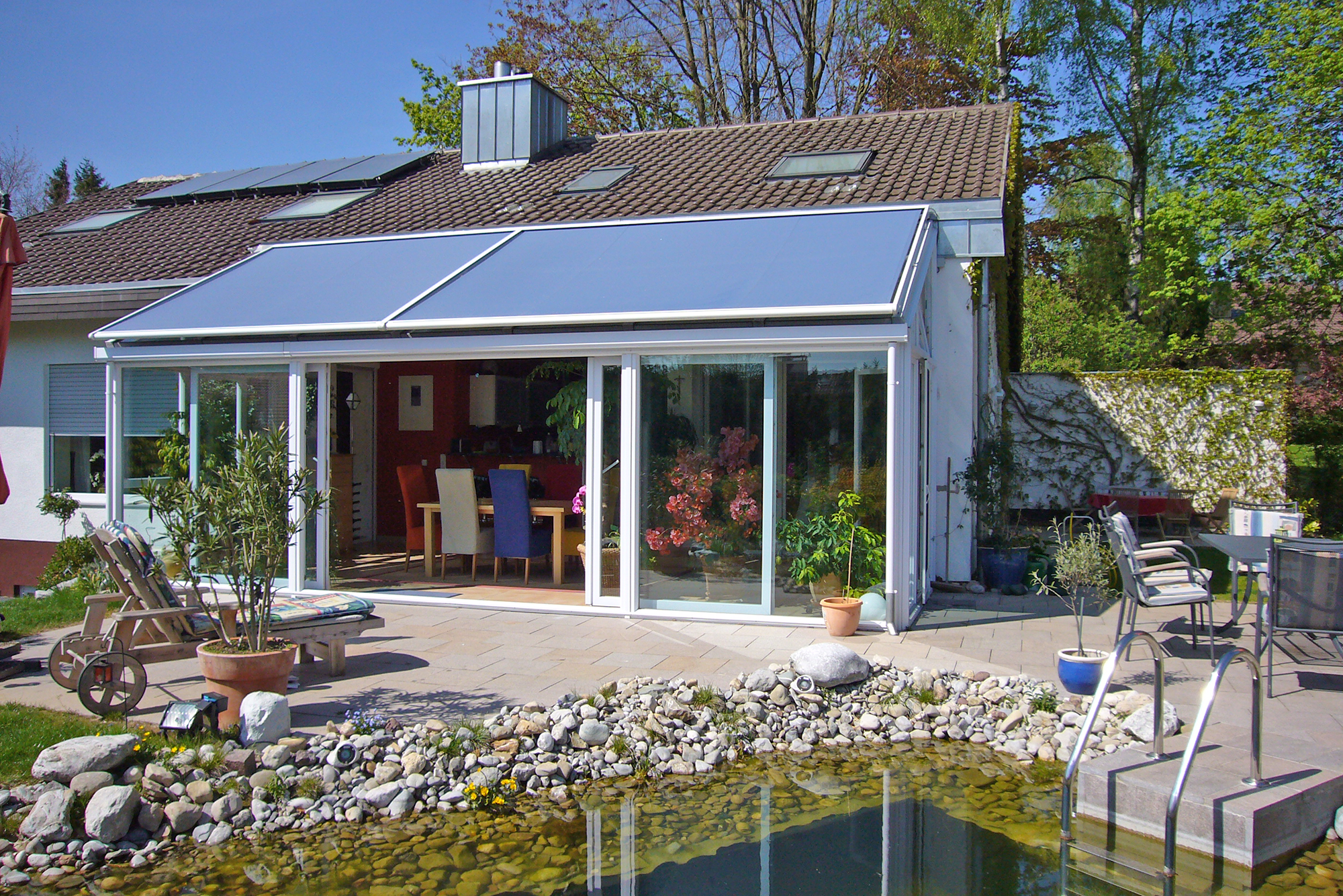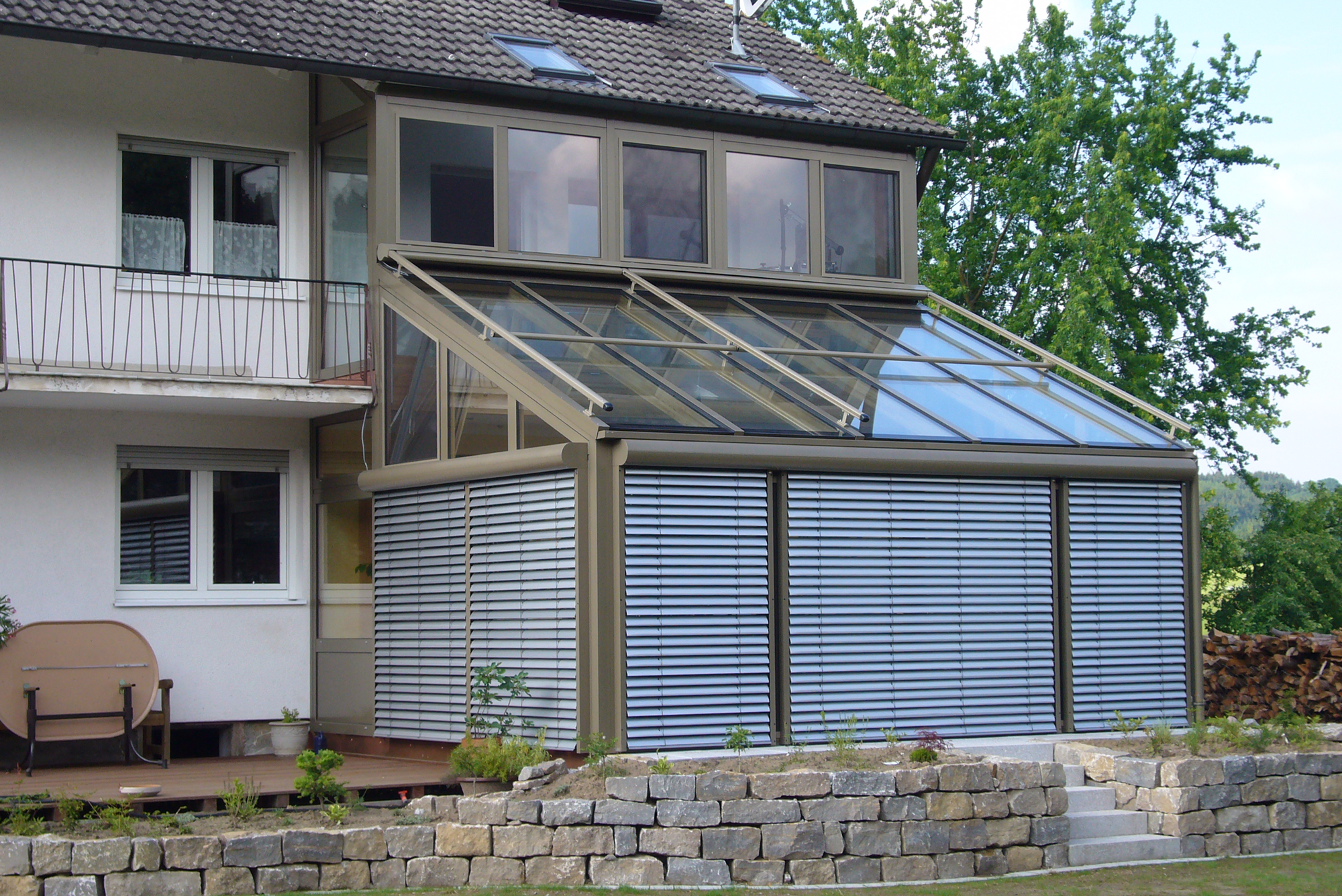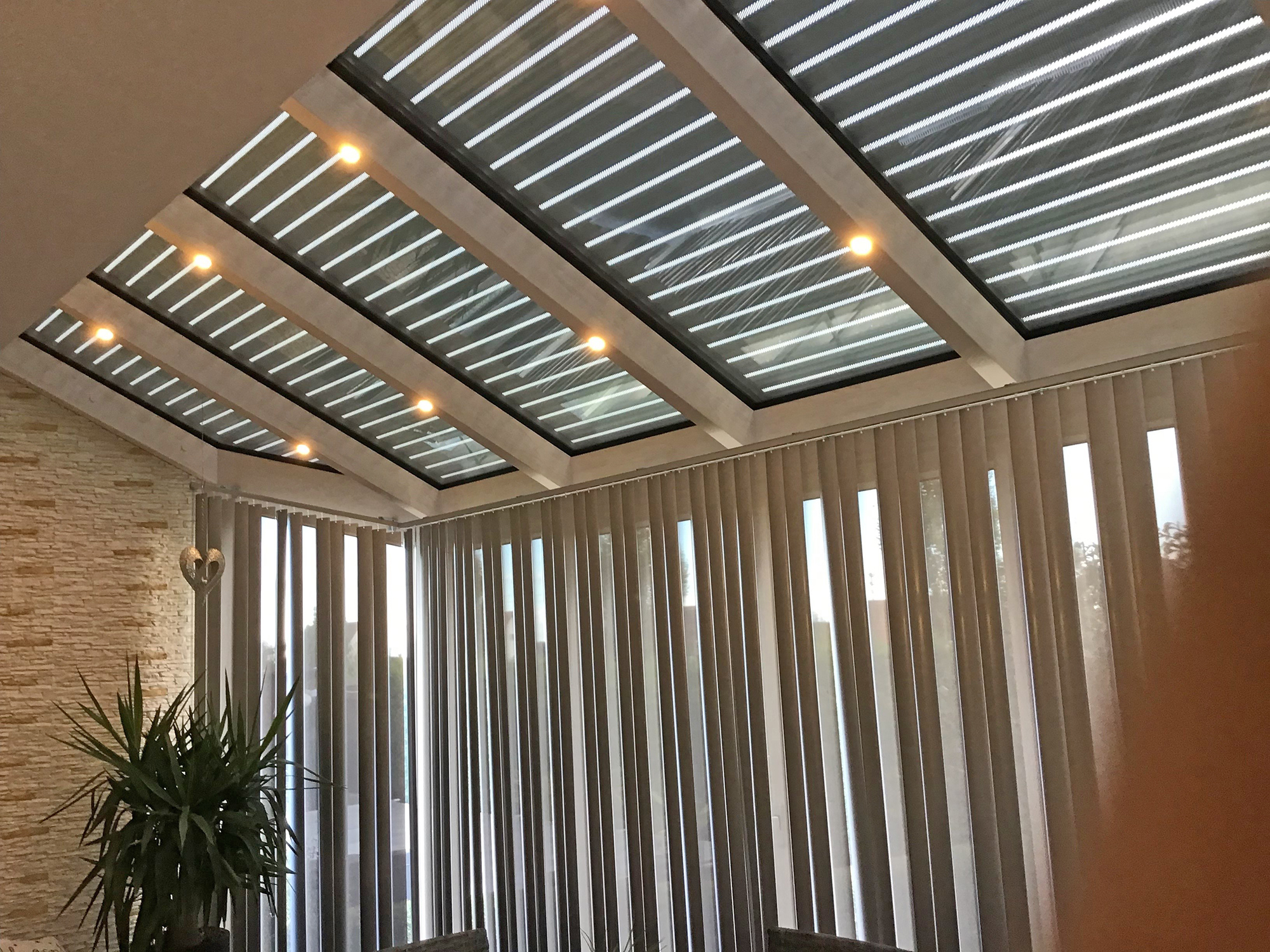 Für einen optimal funktionierenden Wintergarten bietet Göttler Wintergärten Ihnen ein breites Spektrum an Wintergarten-Beschattungstechnik für den Dach- und Elementbereich sowie Steuerungssysteme für die vollautomatische Klimaregulation durch Heiz-Klima-Geräte mit Wärmetauscher und Wärmepumpe an. Damit erhalten Sie auch unter bauphysikalischen Gesichtspunkten ein optimal funktionierendes, neues Gebäudeteil.
