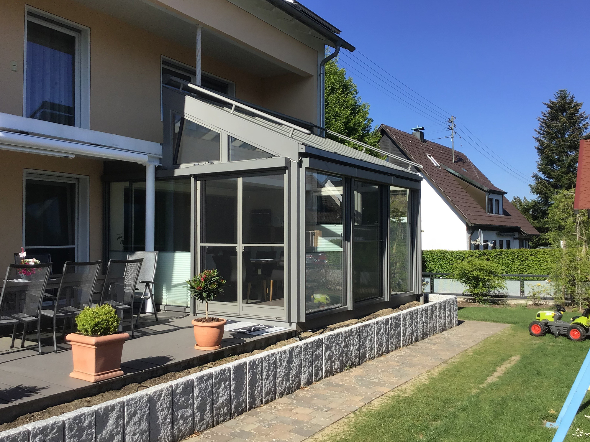 Durch die Verwendung von hochwertigen Materialien in Verbindung mit unserer professionellen Montage garantieren wir Ihnen jahrzehntelange Freude und ein ungetrübtes Wohnerlebnis mit Ihrem persönlichen Wintergarten. Auch nach abgeschlossener Montage stehen wir Ihnen bei allen Fragen rund um Ihren neuen Wintergarten jederzeit gerne zur Verfügung.